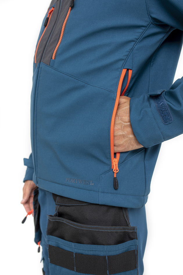 DX474 nabízí sedm kapes – náprsní kapsu na zip, boční kapsy, kapsu na mobilní telefon a další úložné prostory pro nástroje či osobní věci. Zipy se stahováky umožňují snadnou manipulaci i v rukavicích. Reflexní lemování a kontrastní prémiové zipy zvyšují viditelnost a dodávají bundě moderní vzhled.