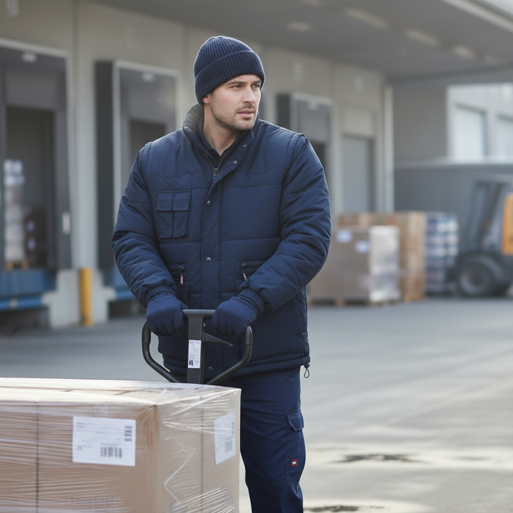 Představte si: ráno nastupujete na ranní směnu, venku –5°C. Bunda POLAR vás udrží v teple díky prošívané konstrukci s polyesterovou výplní, která zachytává teplo a vytváří izolační vrstvu. Odpoledne přecházíte do vytápěné haly – stačí odepnout oddělitelné rukávy a máte vestu. Žádné svlékání, žádné hledání místa, kam bundu pověsit. Vítr fouká zrádně a proniká všude, kde najde skulinu, ale zateplený límec funguje jako bariéra, která chrání krk a spodní část obličeje před mrazem. Elastická lanka ve spodním okraji umožňují utáhnout bundu kolem pasu a zamezit pronikání studeného vzduchu zespodu – když se sehnete nebo pracujete v podřepu, bunda zůstane na svém místě a nepouští dovnitř chlad. Dvě speciální kapsy na mobilní telefon drží telefon bezpečně a zároveň snadno dostupně, zatímco vnější i vnitřní úložné prostory poskytují místo pro peněženku, klíče, poznámkový blok nebo drobné nářadí. Všechno má své místo, nic se neválí volně po kapsách. Bunda je dostupná v velikostech M až 5XL, takže si vybere každý bez ohledu na postavu, a profesionální modrá barva působí decentně a hodí se jak do pracovního prostředí, tak pro běžné nošení.