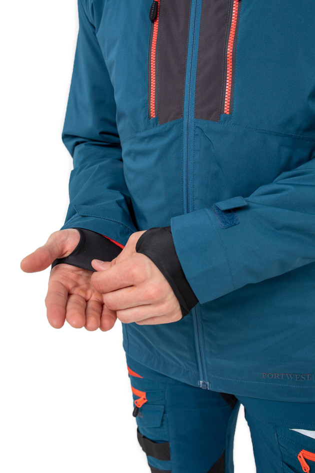 Vnější tkanina Portwest Extreme Waterproof ze 100% polyesteru s PU membránou zajišťuje vysokou voděodolnost a pružnost. Povrchová úprava Texpel™ Splash Eco bez PFAS odpuzuje vodu, která se shlukuje do kapek a jednoduše stéká. Bunda tak zůstává suchá i v dešti či sněhu.