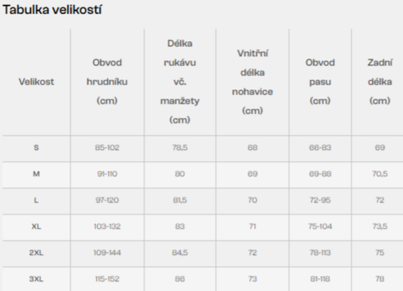 Tento oděv je možné ušít zakázkově podle dodaných velikostí v nestandardních velikostech.