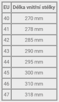 | EU | Délka vnitřní stélky |