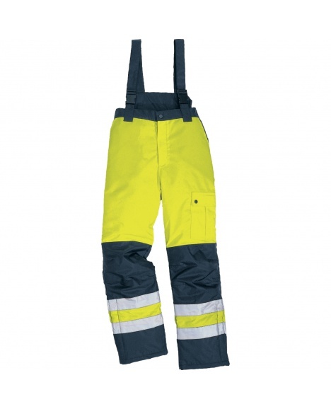 Kalhoty FARGO HV kombinují nepromokavost, tepelnou izolaci a vysokou viditelnost. Materiál Oxford ze 100% polyesteru s polyuretanovým povlakem zajišťuje voděodolnost i prodyšnost. Podšívka z taftu a výplň ze 100% polyesteru poskytují příjemné teplo bez zbytečného zatížení. Gramáž 355g/m² zaručuje dostatečnou robustnost při zachování pohodlí. Voděodolné švy chrání před průnikem vody i v extrémních podmínkách, zatímco PU impregnace zabraňuje nadměrnému pocení. Elastické boky a předtvarovaná kolena zajišťují volnost pohybu, výztuhy v zadní části prodlužují životnost oděvu.