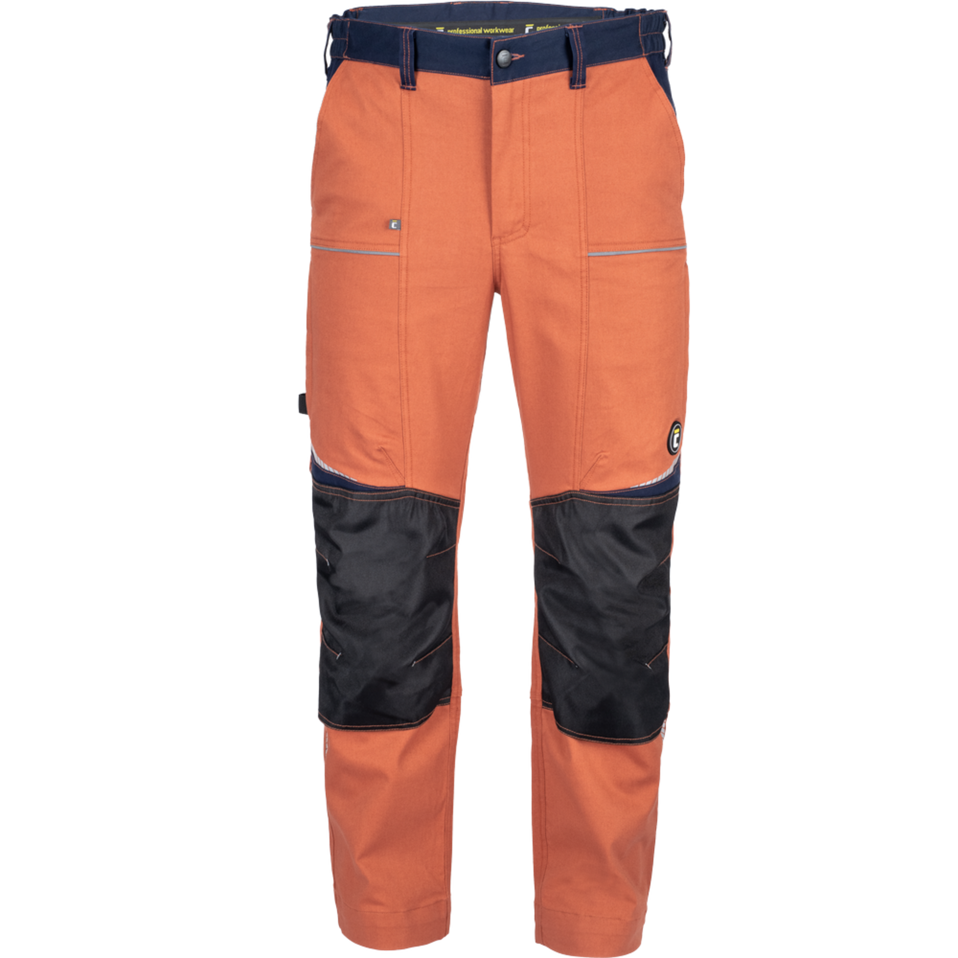 Pánské strečové pracovní kalhoty s pružným pasem, systémem kapes pro každodenní provoz na stavbě a zesílenými kolenními částmi s kapsami pro nákoleníky. Reflexní prvky a prodloužitelné nohavice dělají z těchto kalhot spolehlivého parťáka pro celý pracovní den