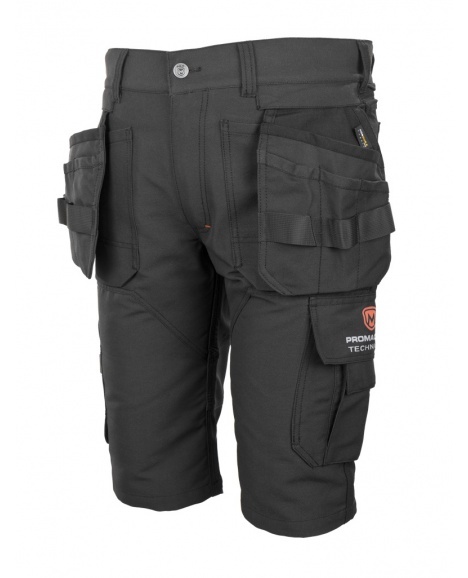 Hlavní materiál těchto kraťasů je 80% polyester a 20% bavlna, který kombinuje odolnost a pohodlí. Tento materiál je příjemný na dotek a zároveň odolný vůči opotřebení. Zadní díl v pase je zvýšený, což zajišťuje pohodlné a bezpečné nošení i při pohybu. Strečový materiál z nylonu a elastanu Spandex přes zadek a pod koleny dodává kraťasům svobodu pohybu a flexibilitu.