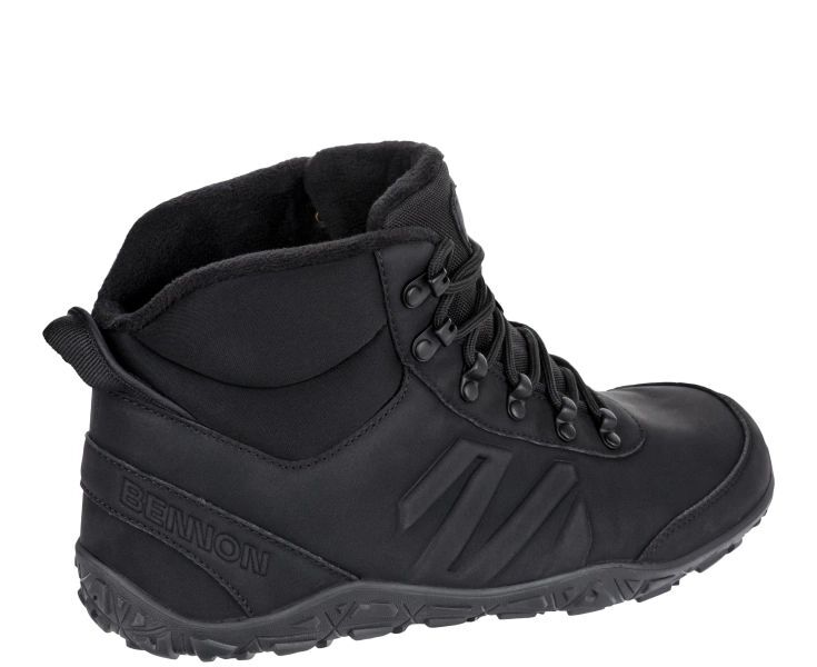 Tato pohodlná a odolná barefoot kotníková obuv BENNON BAREFOOT BLACK WINTER HIGH nabízí ideální řešení do chladného počasí. Svršek z mikrovlákna s efektem broušené usně je odolný vůči zimním vlivům a spolu se zateplenou plyšovou podšívkou udržuje nohy v teple. Pružná, neklouzavá pryžová podešev BARESTEP zachovává maximální flexibilitu a podporuje přirozený pohyb chodidla. Anatomicky tvarovaná stélka ABSORBA XTR tlumí nárazy a zajišťuje celodenní komfort. Stylový kotníkový střih se hodí do města i do přírody a barefoot konstrukce přináší lehkost, stabilitu a svobodu pohybu i v zimních dnech.