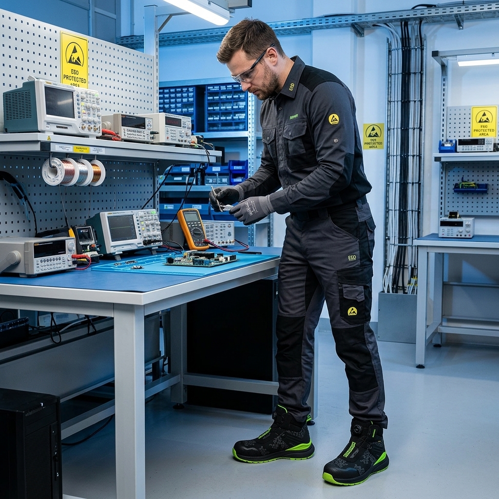 Podrážka obuvi je z materiálu, který nevytváří elektrostatický náboj. Neznamená to, že se jedná o ESD obuv, která odvádí elektrostatický náboj z těla.