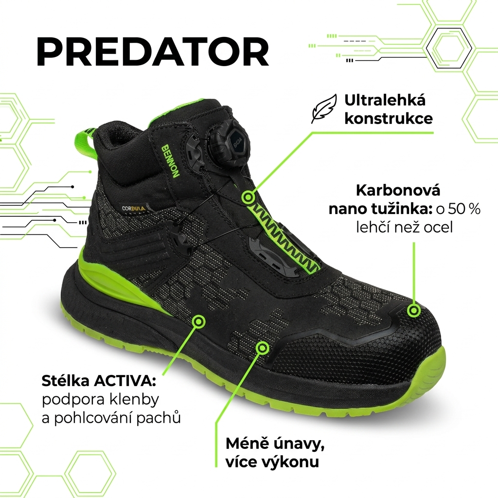 Znáte ten pocit po osmé hodině na stavbě, kdy vás bota začne tlačit, noha se potí a každý krok je trochu víc o vůli než o pohodlí? Nebo když šlápnete na hřebík a modlíte se, aby planžeta vydržela? Bennon Predator S3 SRC byl navržen přesně pro tyhle chvíle. Kotníková bota s karbonovou tužinkou, LIFLEX planžetou a ATOP uzavíracím systémem, která vás ochrání, nenechá vás zpomalit a vydrží tolik, co vy.