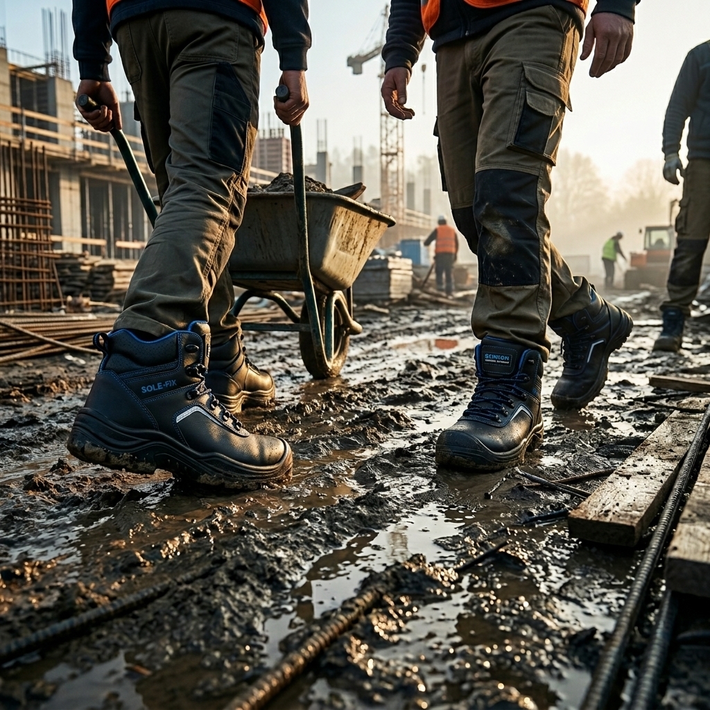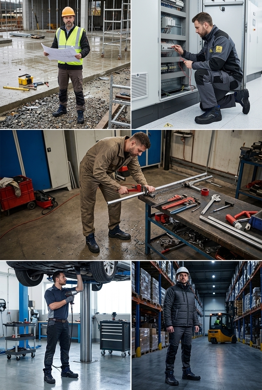 Ráno nastoupíte na mokrou stavbu. Hydrofobní kůže svršku odrazí ranní rosu i kaluže u vjezdu – vlhkost zůstane venku, noha uvnitř suchá. Kolem desáté šlápnete do hromady suti, kde trčí hřebík. Kevlarová planžeta to zastaví dřív, než to vůbec ucítíte. Odpoledne přecházíte přes dílnu, kde jsou na zemi stopy od nafty – podešev DIGGER se s tím vyrovná bez kluzkého momentu. Večer sundáváte boty a nohy vás nebolí – trojkomponentní stélka WARRIOR s odpružujícím prvkem v patě dělala svou práci celý den tiše a spolehlivě. Reflexní prvky na bocích se postaraly o to, že vás viděl každý, kdo projel kolem.
