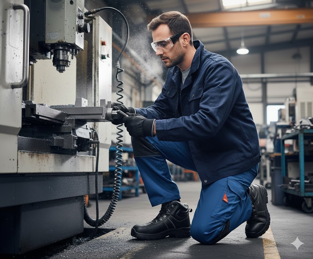 Špice obuvi obsahuje bezpečnostní špičku (obvykle ocelovou nebo plastovou), která chrání prsty před poraněním padajícího předmětu. |