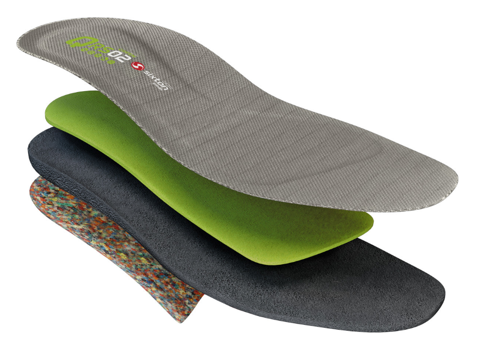 Antiperforační vložka z recyklovaného materiálu pak zastaví hřebík nebo hrot s odolností přes 1100 N při standardizovaném kuželi 3, mm – ochrana pokrývá celou plochu chodidla.