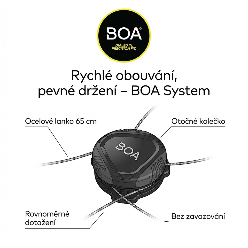 | Uzavírání | BOA System – lankový systém L6, délka 65 cm |