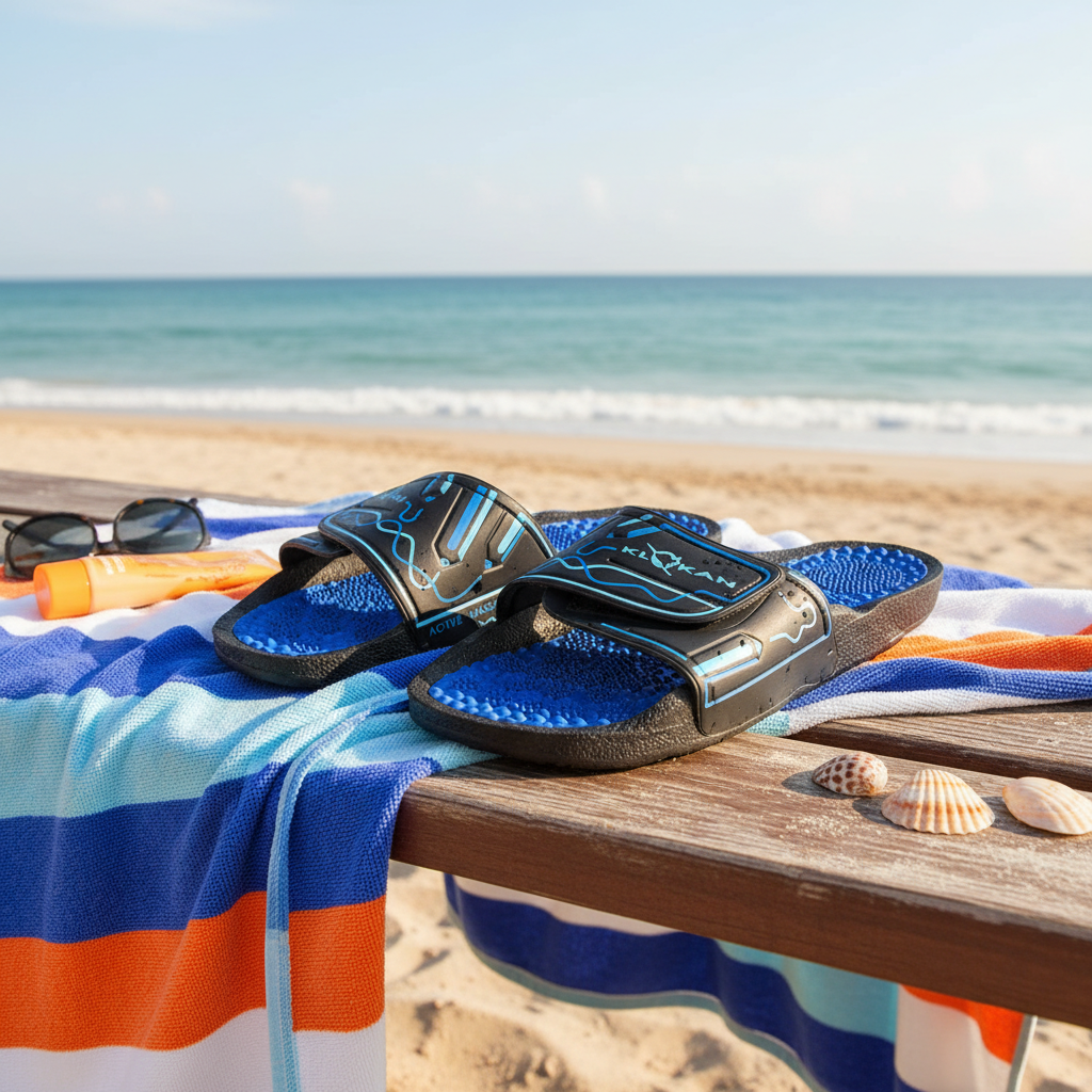 Potřebujete jednoduché, praktické pantofle na pláž, k bazénu nebo do sprchy? Plážové pantofle KLOKAN 256 vám nabídnou rychleschnoucí materiál, který se snadno udržuje a chrání nohy před horkým povrchem i vlhkostí.