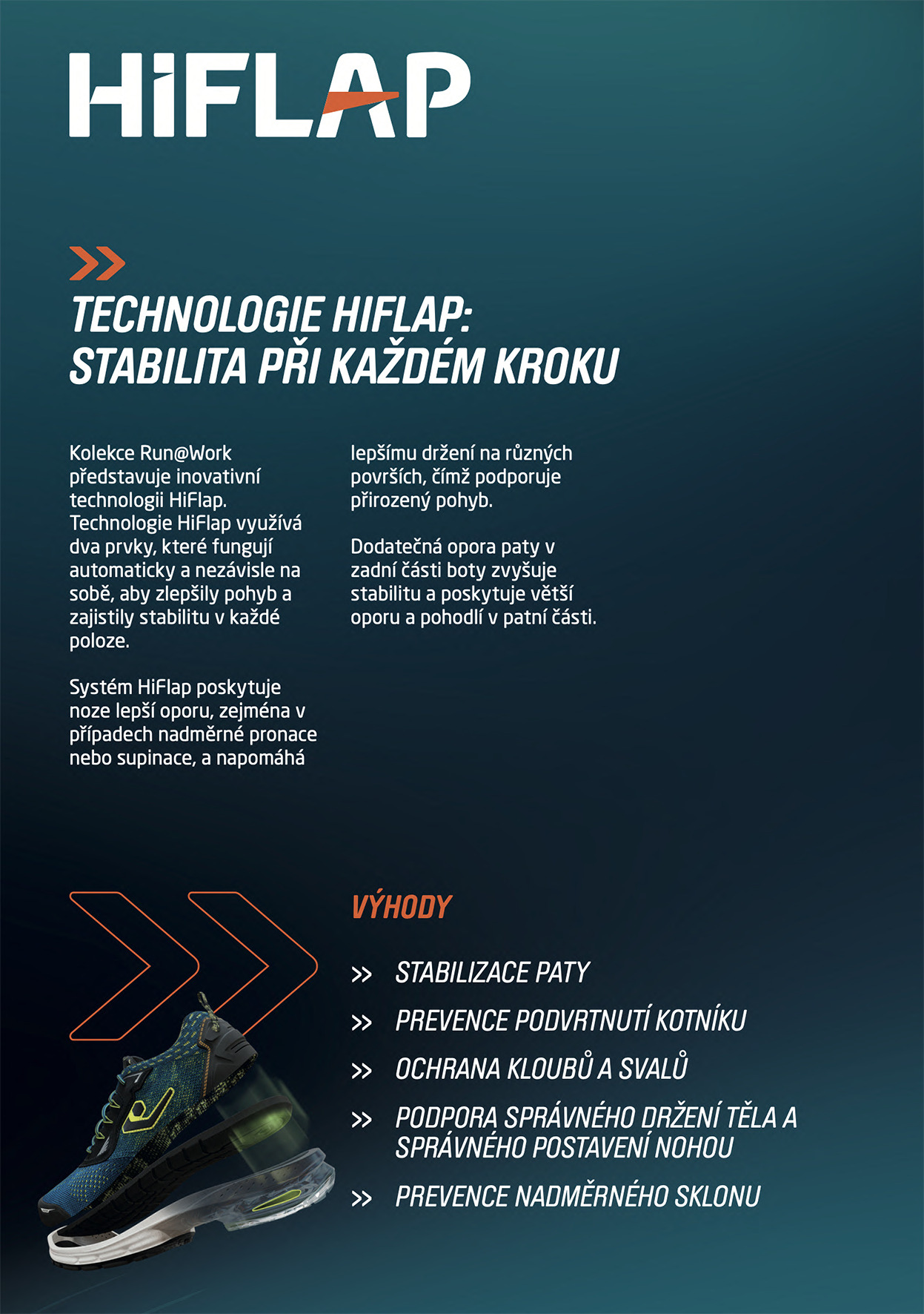 Prodyšnost je klíčovým prvkem pohodlné pracovní obuvi, zejména při celodenním nasazení. Technologie HIFLAP využívá dvě nezávislé klapky, které se přizpůsobují každému kroku a zajišťují stabilitu bez omezení pohybu. Systém Dry'n Air Comfort Cub3 pak přináší ideální kombinaci lehkosti, tlumení a cirkulace vzduchu, díky které zůstávají vaše nohy svěží, suché a bez pocitu únavy i po náročné směně.