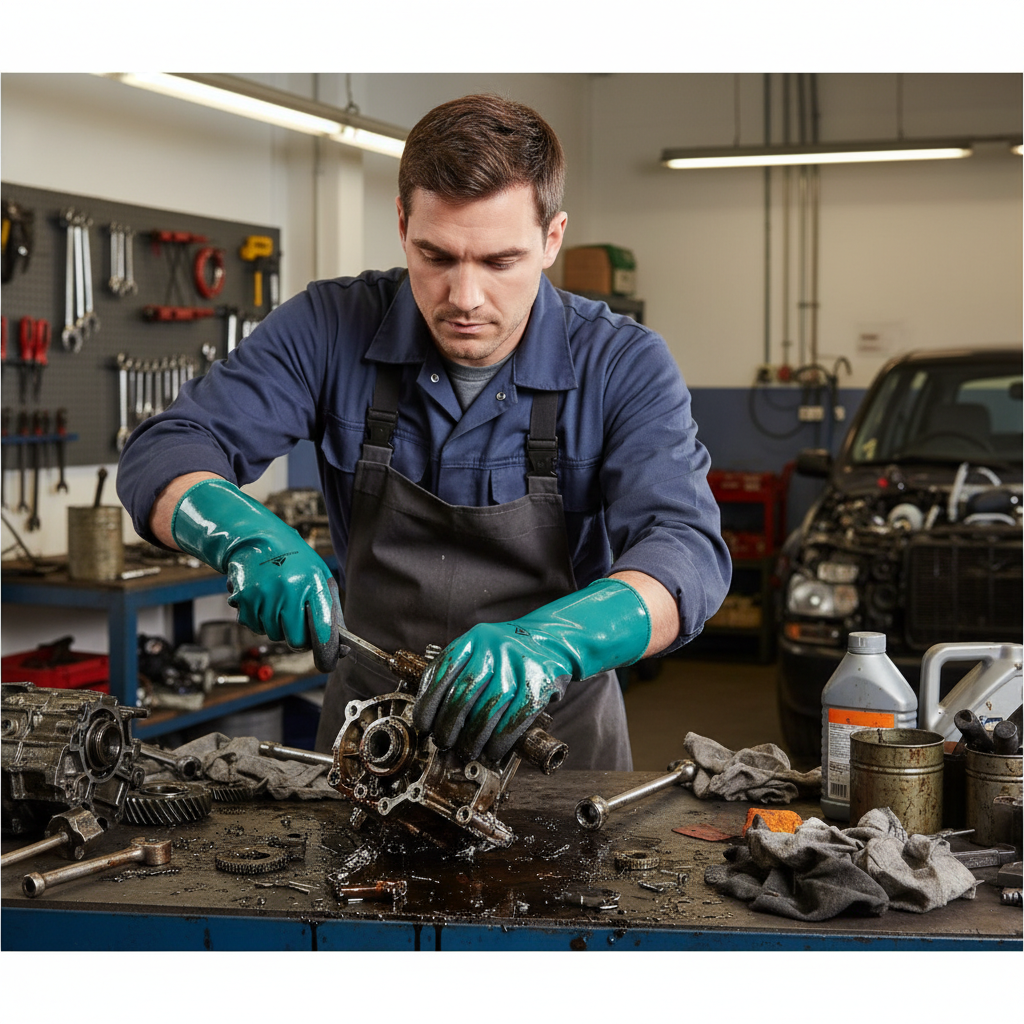 Sklouzávající rukavice při práci s olejem, chemikáliemi nebo mokrými díly? To je nejen nebezpečné, ale i frustrující. Když potřebujete spolehlivý úchop a ochranu před chemikáliemi, sáhněte po rukavicích DeltaPlus CHEMSAFE VV835. Zdrsněná nitrilová pěna na dlani zajistí pevný úchop i na mastných površích, délka 35 cm chrání i předloktí a certifikace EN ISO 374-1 garantuje ochranu před chemikáliemi. Bez latexu.