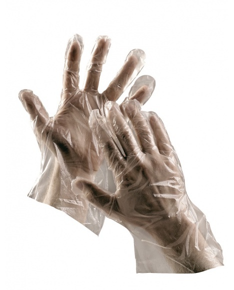 Tenké rukavice z polyetylenové fólie vhodny pro krátkodobý styk s potravinami