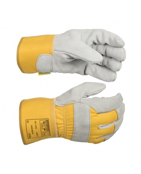 Kombinované pětiprsté pracovní rukavice z hovězí štípané kůže a bavlny