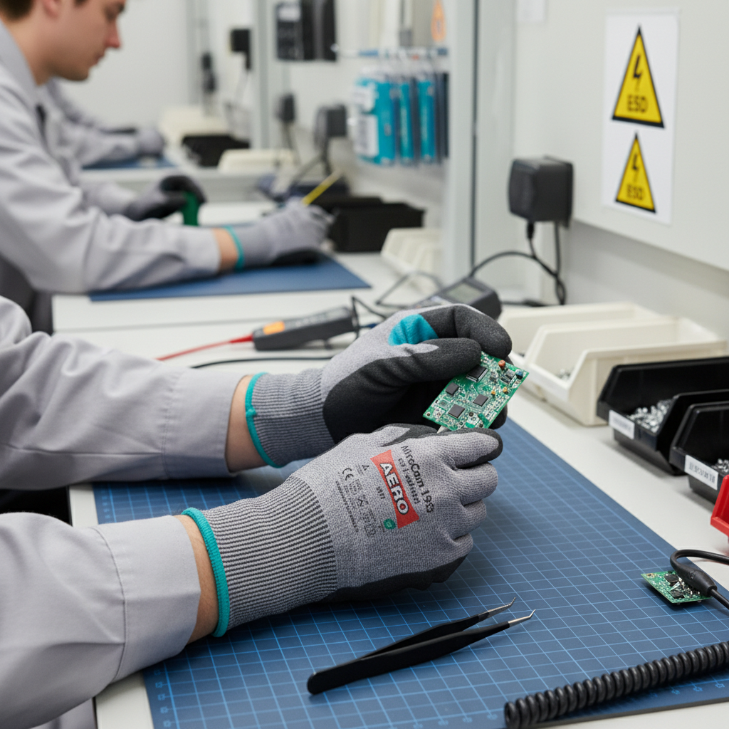 Pracujete s olejem, musíte uchopit mokré součástky nebo manipulovat s ostrými předměty? Víte, že běžné rukavice buď sklouznou, nebo se rychle prodřou. AERO NitroCom 1953 cut F optimal jsou navržené přesně pro tyto situace – speciální nitrilový nános s pískovou úpravou drží jako přísavka za sucha i za mokra, zatímco vnitřní hřebenová mikrostruktura tlumí nárazy a izoluje proti teplu i chladu. Získáte rukavice, které vydrží, chrání a zároveň vám nenechají zpocené ruce. Antistatické provedení navíc ochrání citlivou elektroniku.