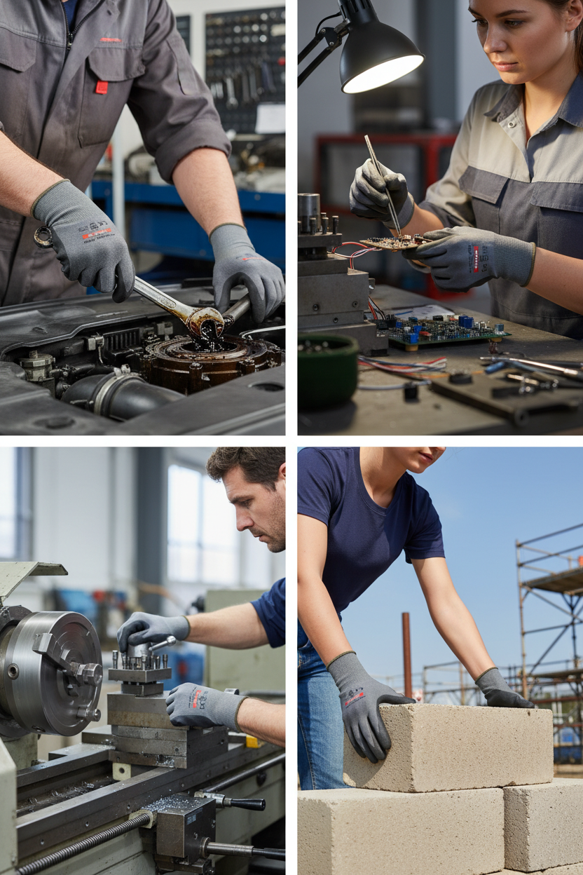 Když pracujete s olejem, mazivem nebo mokrými součástkami, potřebujete rukavice, které vás nezradí. Rukavice AERO NITROSKIN OPTIMAL 1920 s revolučním mikropěnovým nitrilovým nánosem vám zajistí vynikající protiskluzovost za sucha, za mokra i při kontaktu s olejem. Jemný polyesterový úplet poskytuje špičkovou obratnost a hmatovou citlivost, zatímco prodyšný nános udržuje ruce v pohodlí i po hodinách práce. Ať už montujete drobné součástky, opravujete stroje nebo manipulujete s nářadím – tyto rukavice vám dají jistotu a ochranu, kterou potřebujete.