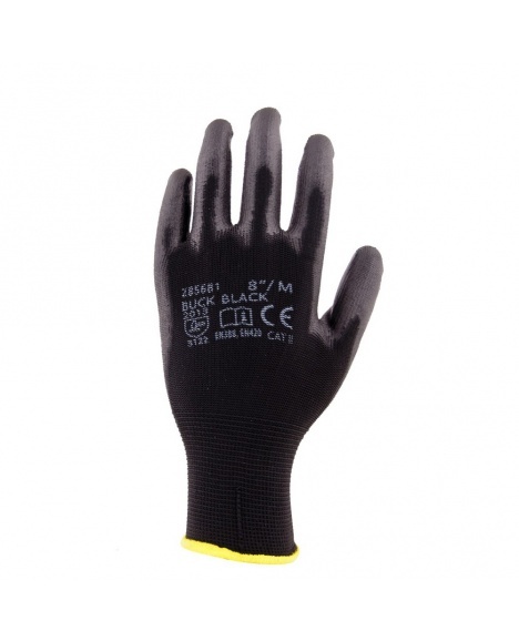 Černé rukavice ARDON BUCK z polyesterového úpletu, máčené v polyuretanu na dlani a prstech, jsou navrženy pro ochranu rukou v různých pracovních prostředích. Zde jsou podrobné informace o těchto rukavicích: