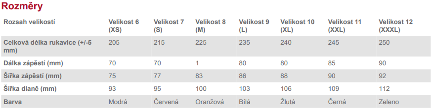 | Tloušťka rukavic [mm]: | 1,30 mm |