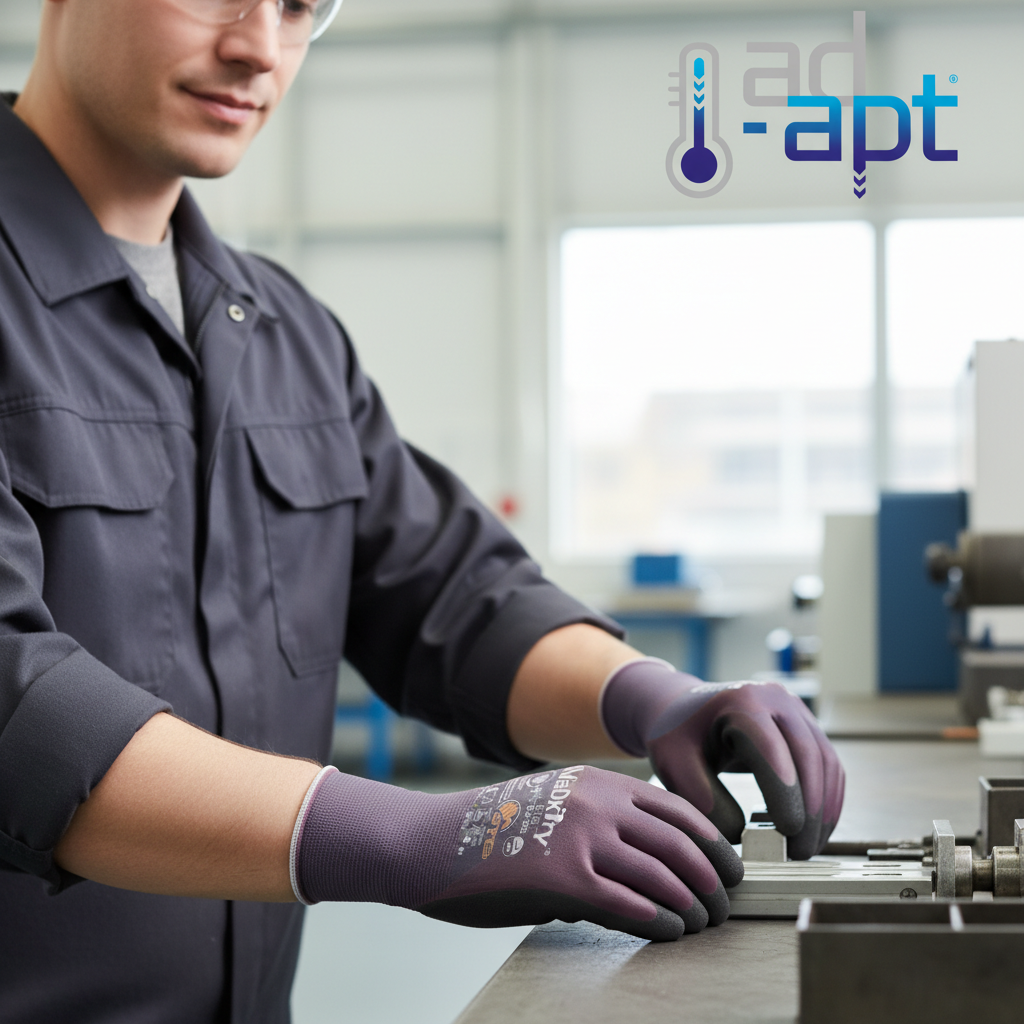 Každý, kdo nosí rukavice celou směnu, zná ten nepříjemný pocit vlhkých a zpocených rukou. Technologie AD-APT® to mění. Funguje tak, že se aktivuje pohybem rukou a zvýšenou teplotou uvnitř rukavice – uvolňuje přírodní chladicí látku, která udržuje ruce suché a chladnější. Není to jednorázový efekt – technologie vydrží po celou dobu životnosti rukavice a odolává praní. To znamená, že i po opakovaném vyprání budete mít stejný komfort jako při prvním použití.