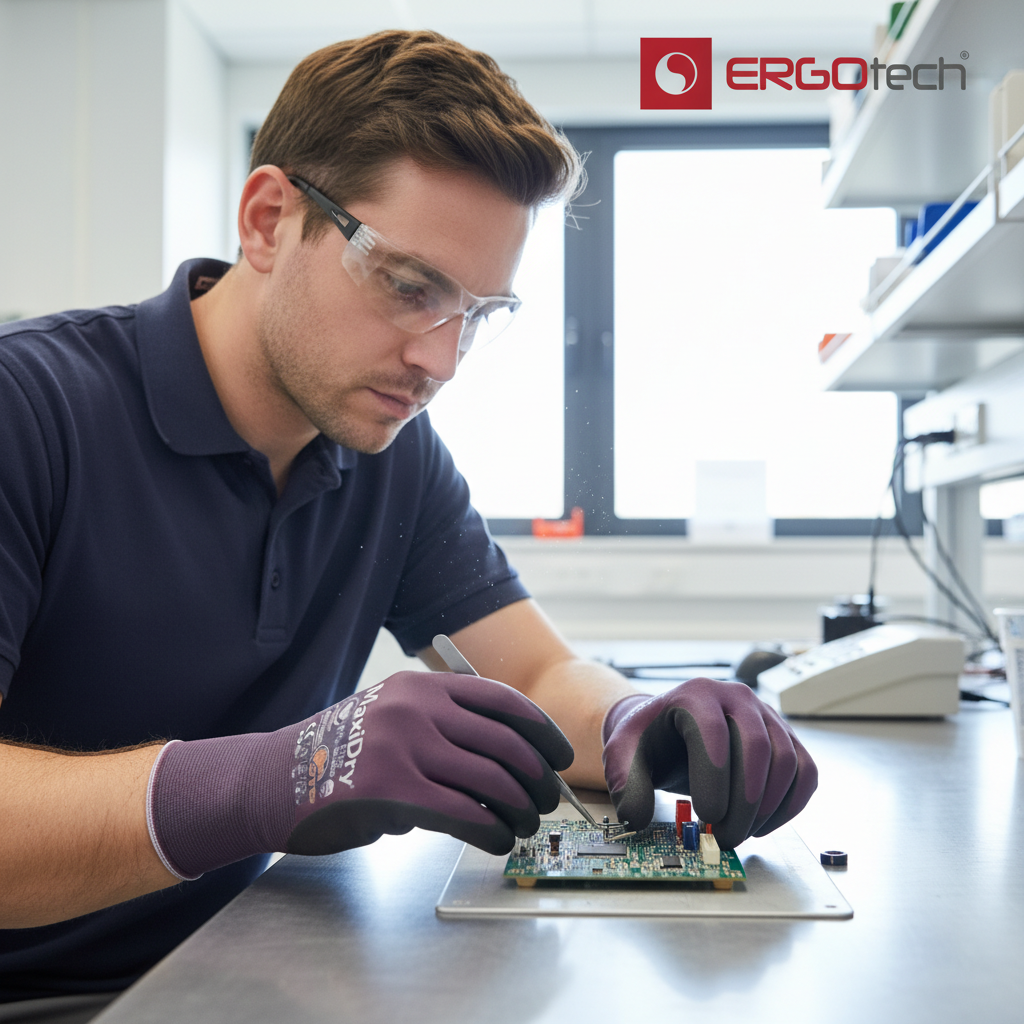 Představte si, že montujete olejový díl nebo pracujete s mastným nářadím. S běžnými rukavicemi vám to klouže z rukou a musíte neustále utírat. Technologie GRIPtech® s mikrostrukturovaným povrchem zajišťuje pevný úchop i ve vlhkém a olejovém prostředí. Protiskluzová úprava je aplikována pouze v dlani, takže prsty zůstávají ohebné a citlivé. Díky tomu snadno uchopíte i drobné součástky nebo nástroje, aniž byste ztratili kontrolu. Méně skluzů znamená méně únavy rukou a vyšší bezpečnost při práci.