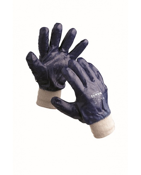 Šité rukavice z bavlněného úpletu povrstvené v nitrilu s pružnou manžetou