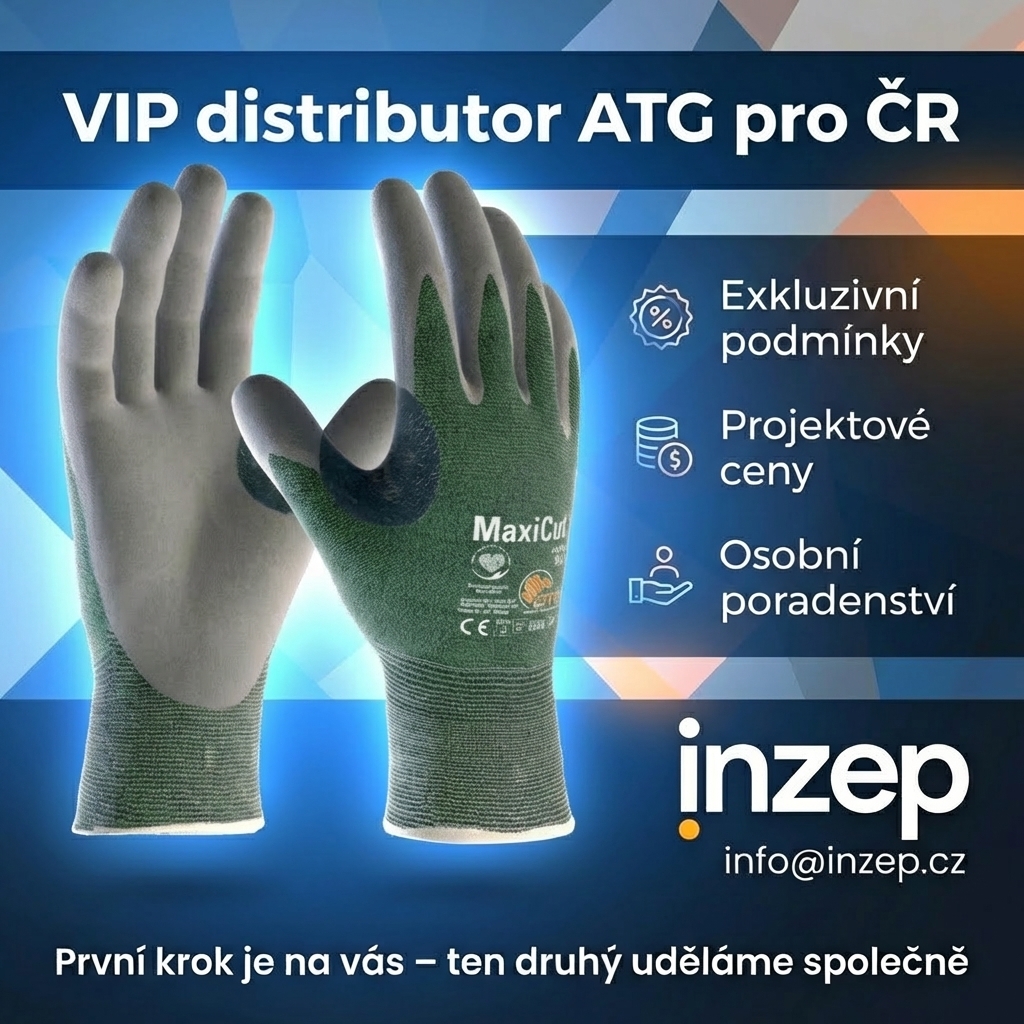 INZEP je oficiální VIP distributor ATG pro Českou republiku. To pro vás znamená přímý přístup k plnému sortimentu rukavic ATG, exkluzivním projektovým cenám a osobnímu poradenství, které v běžné distribuci jednoduše nedostanete. Pokud zvažujete zavedení rukavic ATG ve své firmě, napište nám na info@inzep.cz. Náš obchodník pro vás připraví vzorky k testování přímo ve vaší výrobě zdarma, pomůže vám vybrat správné vzory pro vaše prostředí a zpracuje srovnávací analýzu Before/After včetně výpočtu reálných úspor.