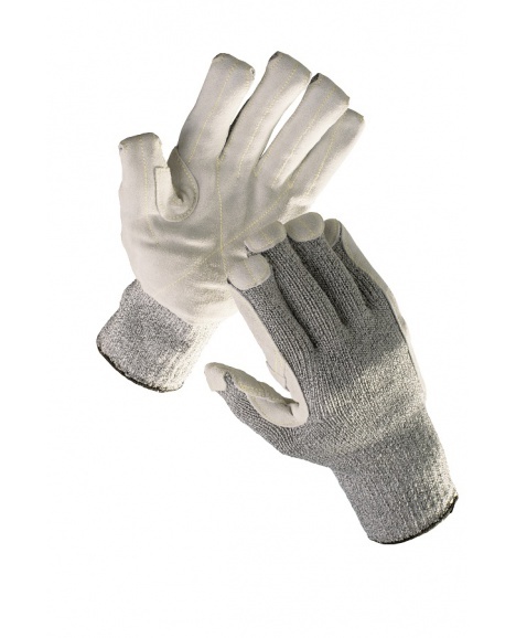 Rukavice CROPPER STRONG jsou pletené, kombinované a protipořezové rukavice, které poskytují vysokou úroveň ochrany v rizikových oblastech. Jsou vyrobeny z modifikovaného skleněného vlákna, Spandexu® a Nylonu, což zajišťuje odolnost vůči prořezání a zlepšuje pohodlí při nošení. Rukavice mají zesílení z hovězí štípenky v dlani a na prstech, stejně jako zdvojenou vrstvu mezi palcem a ukazovákem, což poskytuje další ochranu a odolnost. Kromě toho jsou špičky prstů překryté, což zvyšuje jejich trvanlivost.