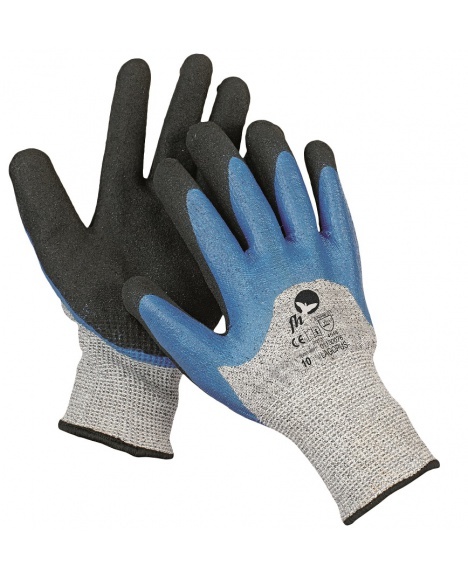 Rukavice FH LAGOPUS jsou pletené, kombinované a protipořezové, vyrobené z modifikovaného skleněného vlákna a vysokohustotního polyethylénu. Tyto rukavice jsou pokryté modrým nitrilem, který je dále překryt mikroporézním černým Nitrilem s pískovou úpravou. Tato kombinace materiálů a úprav poskytuje rukavicím odolnost proti pořezu a zároveň zlepšuje úchop díky protiskluzovým vlastnostem.