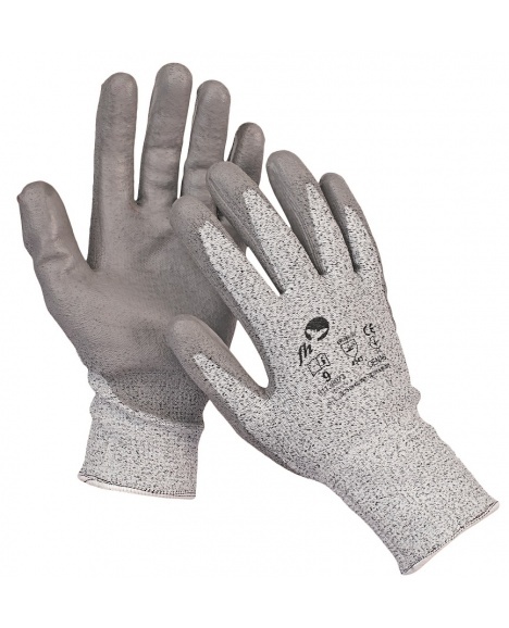 Pletené bezešvé rukavice s obsahem vlákna DYNEEMA® s dlaněmi a prsty povrstvené polyuretanem