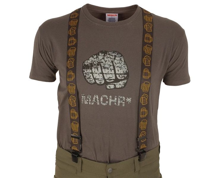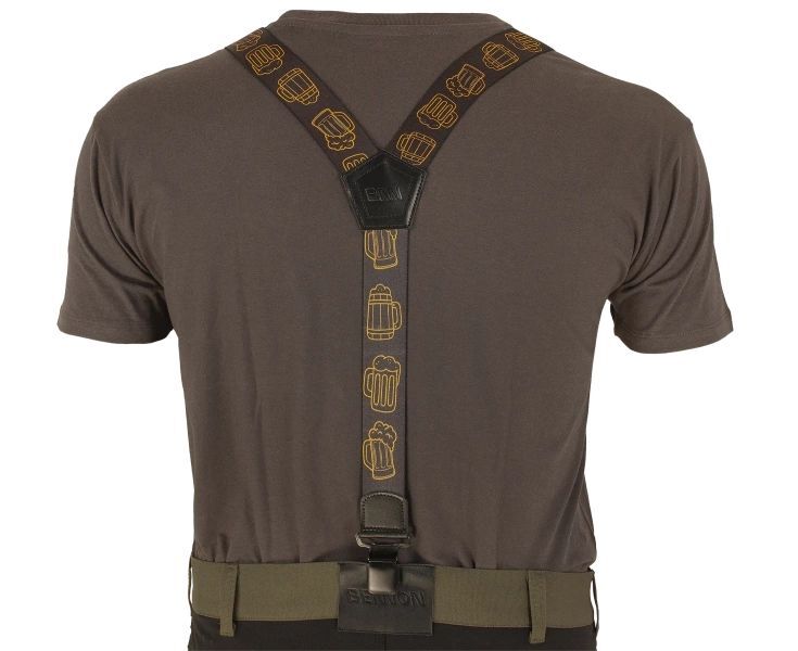 Nastavitelné univerzální šle BENNON BENNONKY Beer Braces black/yellow jsou praktickým a stylovým doplňkem pro každodenní nošení. Tyto kšandy se vyznačují širokým popruhem o šířce 4 cm s veselými obrázky, které dodají vašemu outfitu šmrnc.