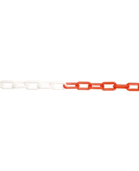 Plastový řetěz ve variantě červeno-bílý. Velikosti řetězů 6 a 8 mm . Součást bariérového systému, nutno mít další prvky pro kompletaci.